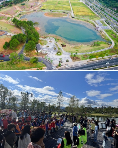 龍州濕地是九龍江流域山水林田湖草沙一體化保護(hù)和修復(fù)項目海綿城市建設(shè)范例工程,也是我市2023年十大重點攻堅項目北部新城建設(shè)的“點睛之筆”,主要使用的是國家政策補助資金。項目占地面積約20公頃,通過“護(hù)山、理水、營林、興田、清湖、豐草”六大舉措,構(gòu)建了蓄洪湖區(qū)、生態(tài)修復(fù)區(qū)、農(nóng)田區(qū)及休閑區(qū)多樣用地,同時,設(shè)置了蓄洪湖、濕地步道、山谷攔蓄、引水工程等海綿設(shè)施,實現(xiàn)“城在田中田在城中”山水田園與城市和諧共生的美好景象。
