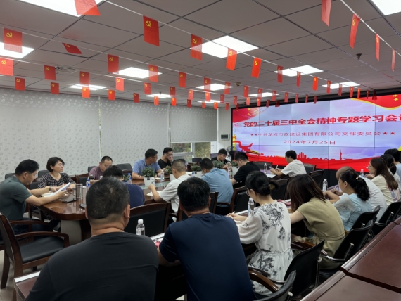 7月25日,市政集團黨支部組織召開黨員大會傳達學習習近平總書記在黨的二十屆三中全會上的重要講話和全會精神,貫徹落實市委、市政府城發(fā)集團黨委的工作部署