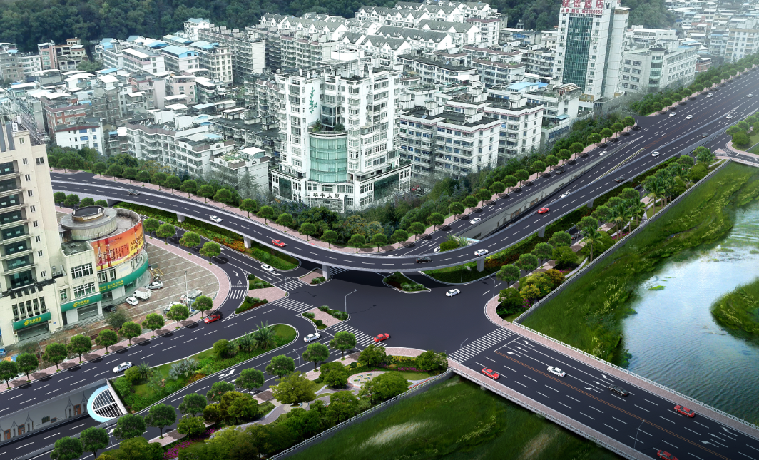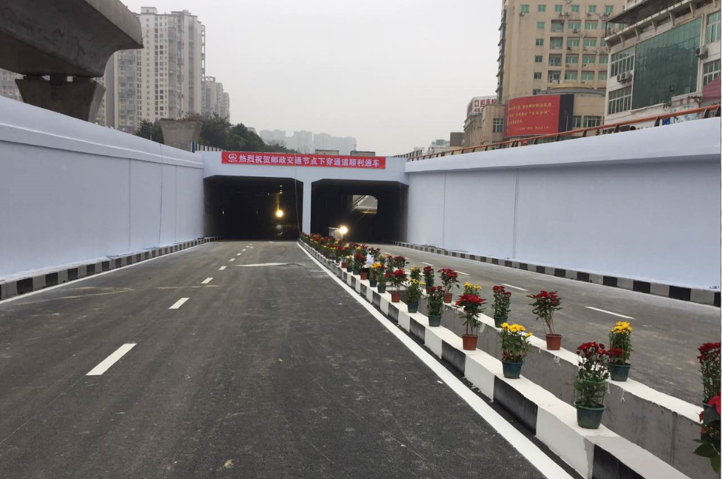 郵政交通節(jié)點(diǎn)項(xiàng)目起于蓮莊北路順康汽車檢測中心處,終于瑞德酒店門口,采取“主線下穿、左轉(zhuǎn)高架”方案,設(shè)下穿通道下穿南環(huán)西路與南環(huán)中路交叉口,全長700米,凈寬2×8.5米,其中暗埋段長度為120米,敞開段(U型槽)長275米;南環(huán)路往溪南南路方向設(shè)左轉(zhuǎn)匝道高架,橋長246米,兩側(cè)引道擋墻全長117米,項(xiàng)目總投資約1.4億元。