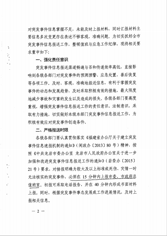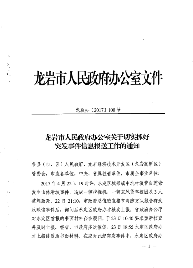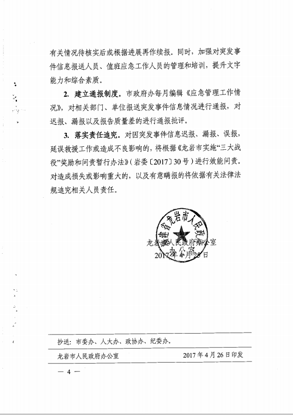 市政府辦關(guān)于切實抓好突發(fā)事件信息報送工作的通知(龍政辦【2017】100號)