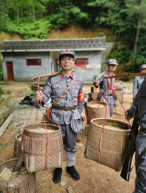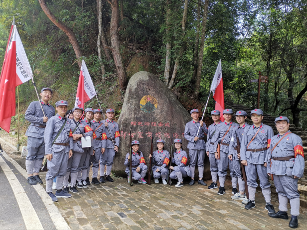 隨后,學員們在中央蘇區(qū)松毛嶺戰(zhàn)役遺址,開展了瞻仰紅軍無名烈士墓、重走紅軍路等現(xiàn)場情景教學,在郭公寨前線指揮所前,學員們聽取了紅軍戰(zhàn)士艱苦戰(zhàn)斗生活的詳細生動講解,并親自感受送糧送彈、綁擔架、護送傷員等,用實際行動致敬革命先烈。