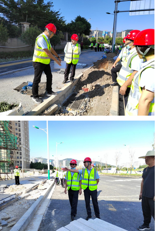 在檢查現(xiàn)場,檢查組一行認(rèn)真查看道路施工安全隱患,并要求施工單位立即整改同時,市政集團(tuán)黨支部書記、董事長徐旺興還強(qiáng)調(diào),一要嚴(yán)把質(zhì)量關(guān),強(qiáng)化質(zhì)量監(jiān)督,抓質(zhì)量的同時還要重安全,堅(jiān)持“標(biāo)準(zhǔn)化、規(guī)范化、程序化”作業(yè),施工過程嚴(yán)格按照操作規(guī)程施工,嚴(yán)禁違章施工,確保安全生產(chǎn);二要排除安全隱患,對檢查中發(fā)現(xiàn)的安全問題要及時與項(xiàng)目負(fù)責(zé)人對接溝通,并正式通車前逐項(xiàng)整改,不留死角;三要強(qiáng)化全局意識,完善工作機(jī)制,施工和監(jiān)理單位要緊密協(xié)調(diào)配合,提高工作效率,嚴(yán)控時間節(jié)點(diǎn),全力以赴打好項(xiàng)目攻堅(jiān)戰(zhàn),確保如期通車,為廣大群眾提供“優(yōu)質(zhì)、安全、舒適”的通行環(huán)境。